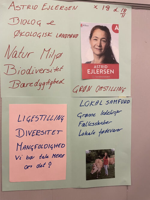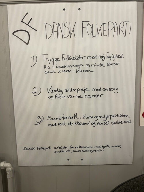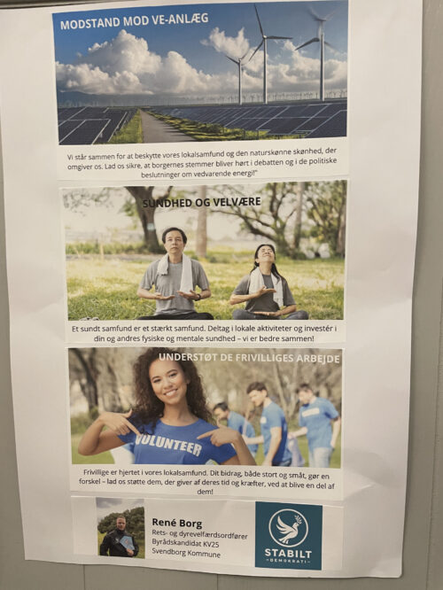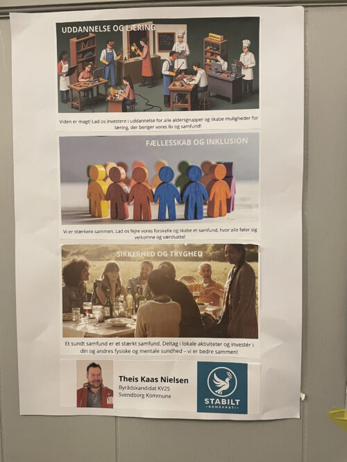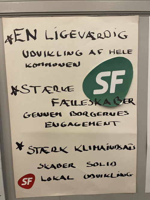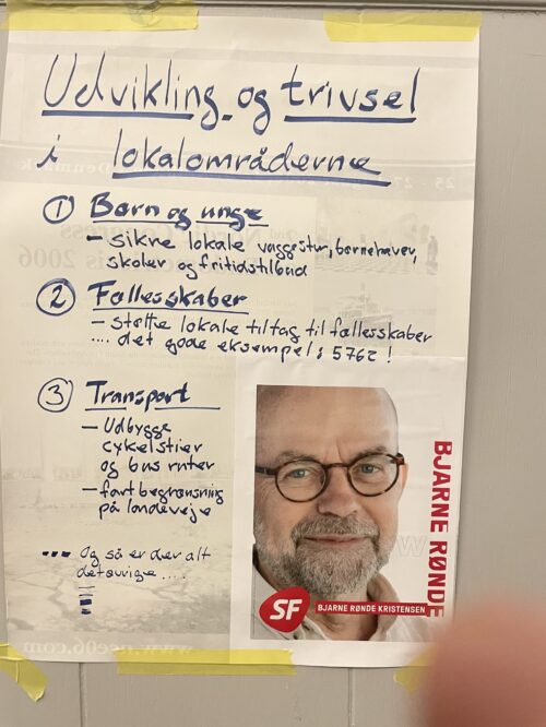 De deltagende kandidater var på forhånd bedt om at møde op med en plakat, der tydeliggør hvilke tre indsatsområder, der står øverst på deres liste, når det handler om lokalområdernes udvikling. Herved blev der skabt et spændende politisk galleri, som fortjener videre formidling inden valget.