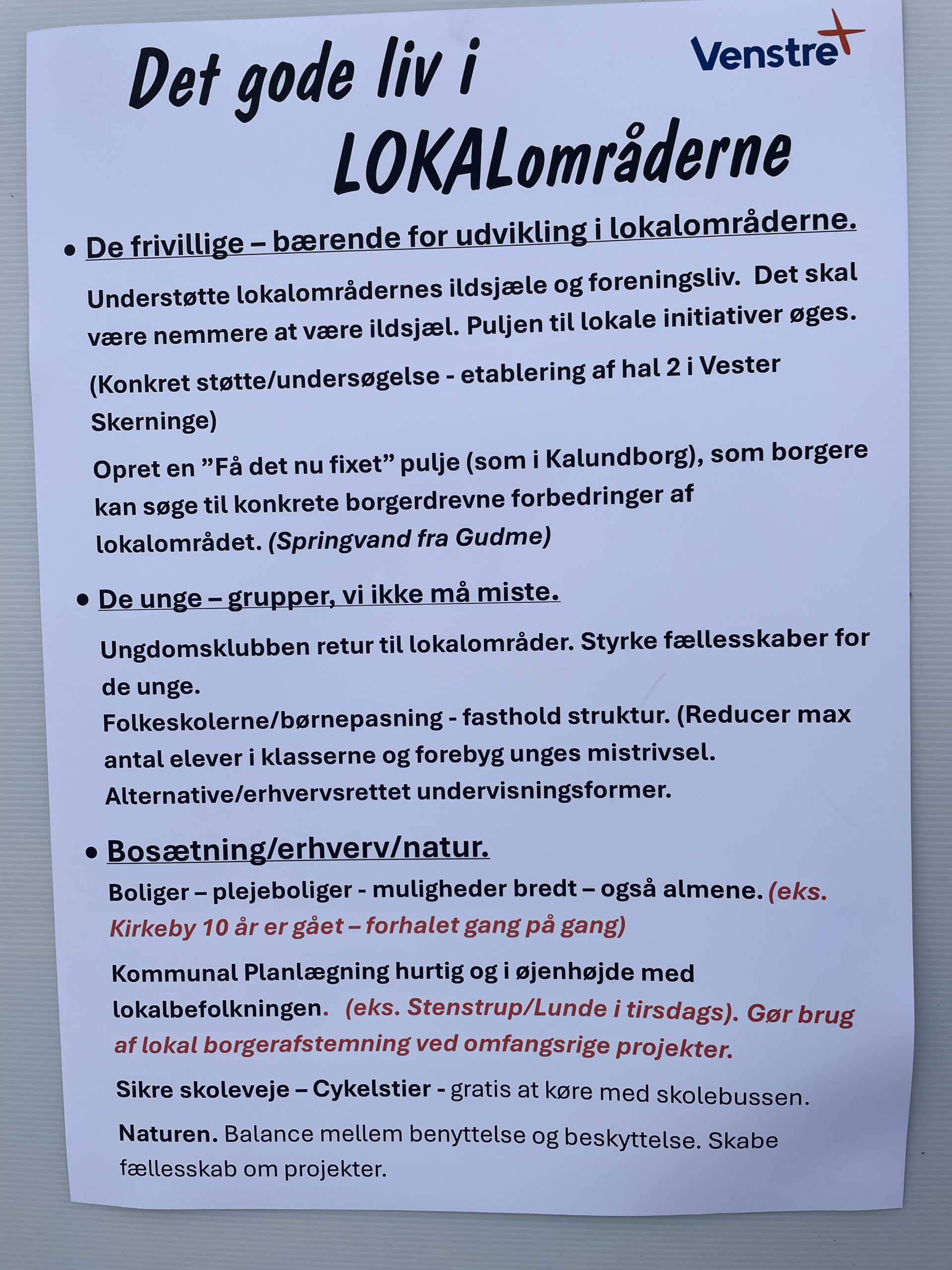 Så her bringes alle politikernes bud på en tilrettet valgplakat med deres egen TOP 3 TIL DEN LOKALE UDVIKLING.